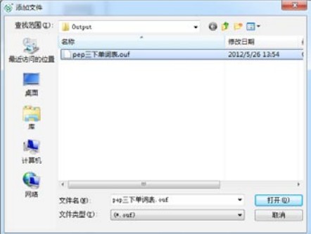 在添加文件的对话框中选择需要添加的书本音频文件,双击或者按“打开”按钮都可以将选中的书本音频文件添加到FS下。