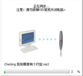 (3)点击“同步”按钮,即可完成。(注:若需删除笔中书本音频文件或MP3文件,必须在完成(1)或(2)步骤后,点击“同步”按钮,否则无法将文件彻底删除。)