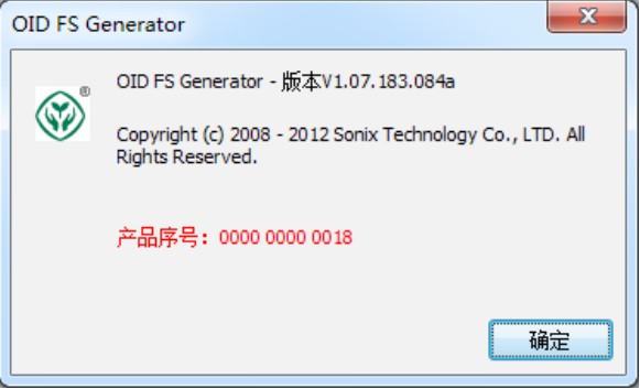 帮助按钮,点击帮助按钮会弹出如下所示对话框,对话框中记录了FS软件版本号和点读笔的序列号。其中FS软件版本号会因为软件升级而不同于下图所示,但是不会影响使用。
