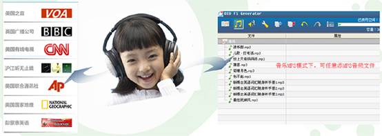 在MP3模式下,可添加所需的音频学习资料和喜爱的音乐(注:须为*.MP3格式)。通过耳机端可以欣赏到优质的发音和音乐,给予满足孩子学习和娱乐。